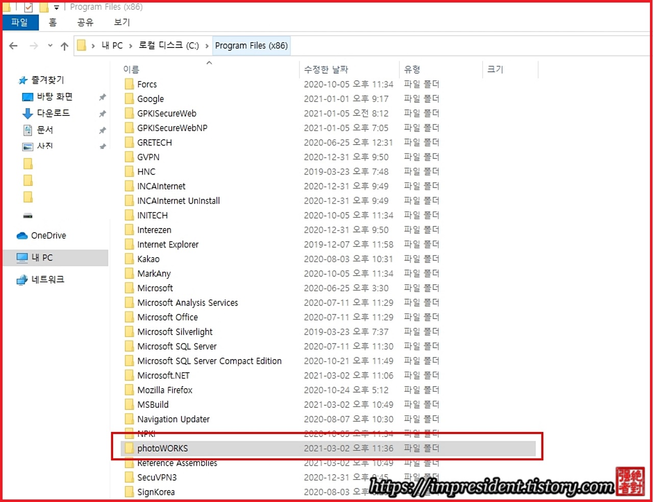 ์์ ๊ด๋ฆฌ์์์ photoWORKS(32๋นํธ)๋ผ๊ณ ๋์ต๋๋ค.