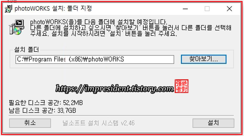 ํฌํ ์์ค๋ฅผ 64๋นํธ์ ์ค์นํ ๋์ ๋ฐ๋์ C:\Program Files\photoWORKS ๋ก ์ง์ ํ์ ์ผ ํฉ๋๋ค.