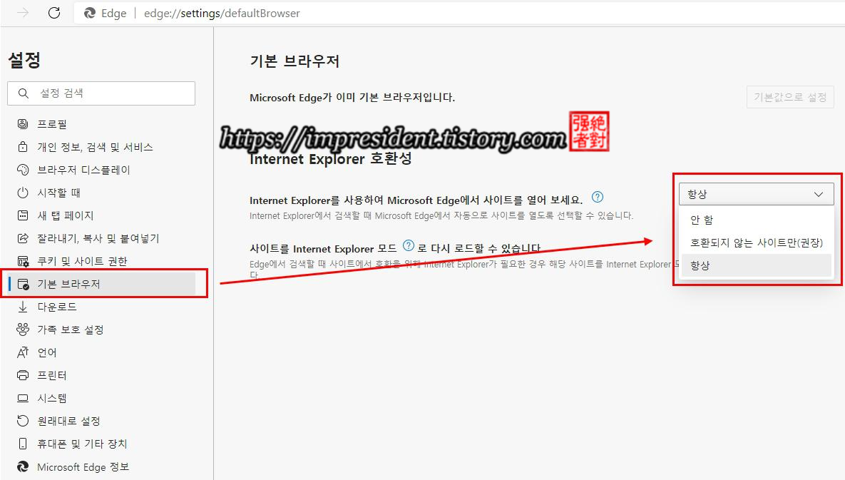 ๊ทธ๋ฆฌ๊ณ ์ฃ์ง์ ์ค์ ์ฐฝ์์ ์์ ๊ฐ์ด ๊ธฐ๋ณธ ๋ธ๋ผ์ฐ์ ๋ฅผ ์ค์ ์ ํด ์ค๋๋ค.