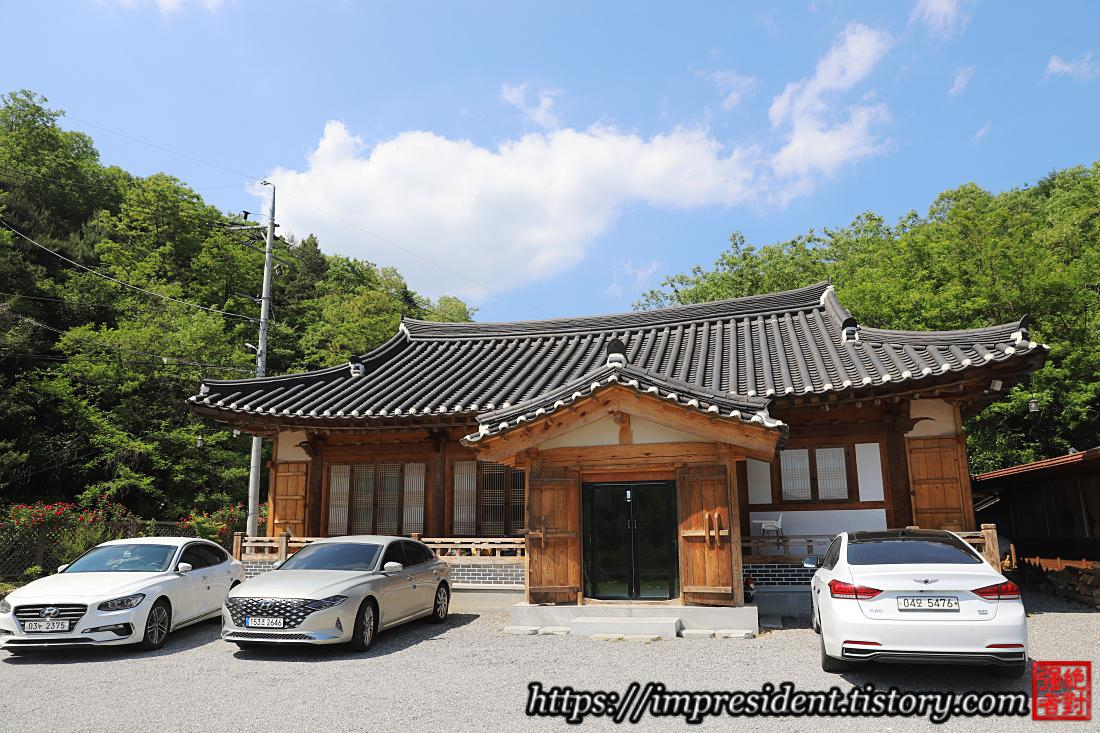 ํ์ฅ์ง ๋ฐ๋ก ์์ ์์ ๊ฑด๋ฌผ... ์ฐจ์ ๊ฐ๋ ค์ ธ์ ์ ๋ณด์ด์ง ์์ง๋ง ๋จ์ธต ์ง๋ถ์ ์ค๋ฅธ์ชฝ์ ๋ณด์ด๋ ๊ฑด๋ฌผ์ด ์นดํ๋ก ์ด์ฉ๋๋ ๊ณณ์ ๋๋ค.