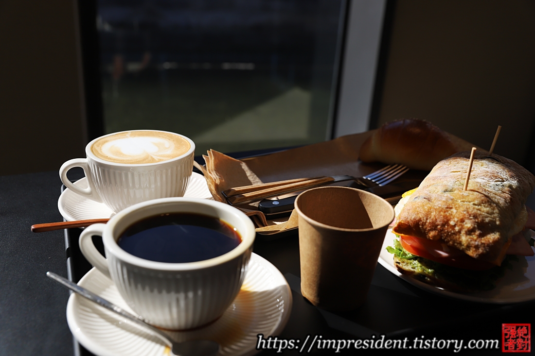 1์ธต์์ ์ฃผ๋ฌธ์ ํ๊ณ , ์๋ฐ์ ์ปคํผ์ ๋นต์ ๋ค๊ณ 2์ธต์ผ๋ก ์ค๋ฆ ๋๋ค.