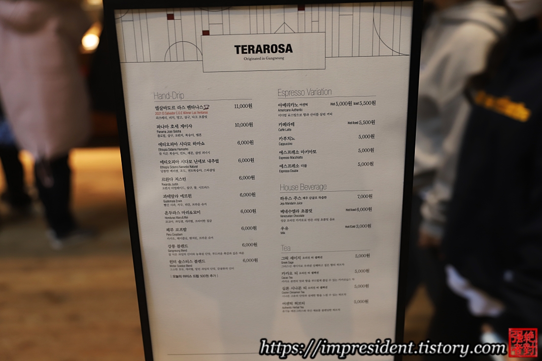 ์ผ์ชฝ์ ๋นจ๊ฐ ์ปคํผ์์ด ์ด๊ณณ์ ์๊ทธ๋์ณ ๋ฉ๋ด์ธ ์์ด๋ฐ๋๋ฅด ๋ผ์ค ๋ฒคํ๋์ค(๊ฐ๊ฒฉ 11,000์)์ ๋๋ค.