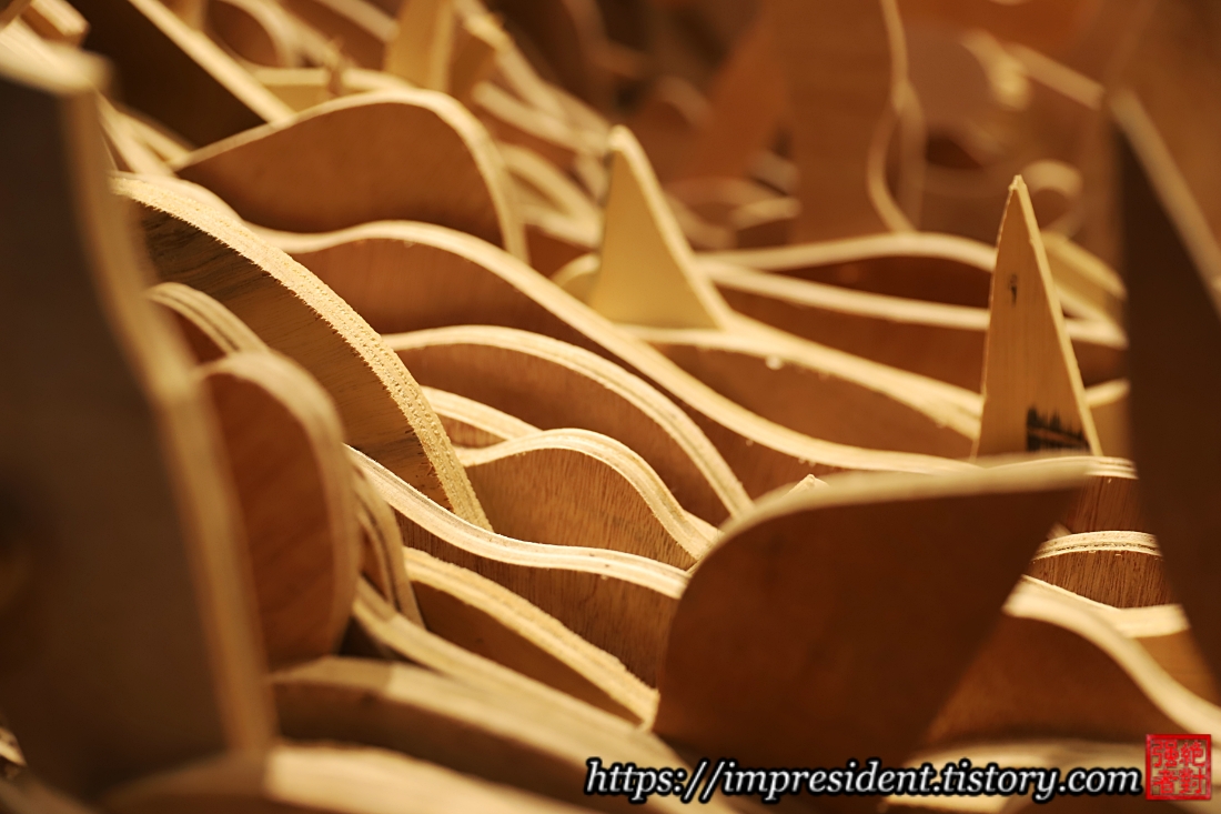 ๊ฐ๊น์ด์์ ๋ณด๋ฉด ๊ทธ๋ฅ ๋ฒ ๋์ดํฉํ์ธ๋ฏํ ๋ชฉ์ฌ๋ฅผ ์ผ์ผ์ด ์๋ฅด๊ณ ๊ฒน์ณ์ ํ๊ณต์ ๋งค๋ฌ์ ๋์ ์ํ.